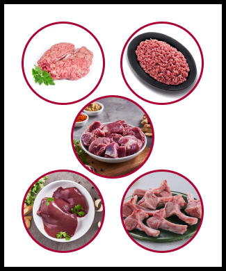 Curry Cut, Minced Mutton / Keema, Shoulder Cut, Chops/Ribs, Liver, Brain, Paya/ Bones and Soup Bones/Paya